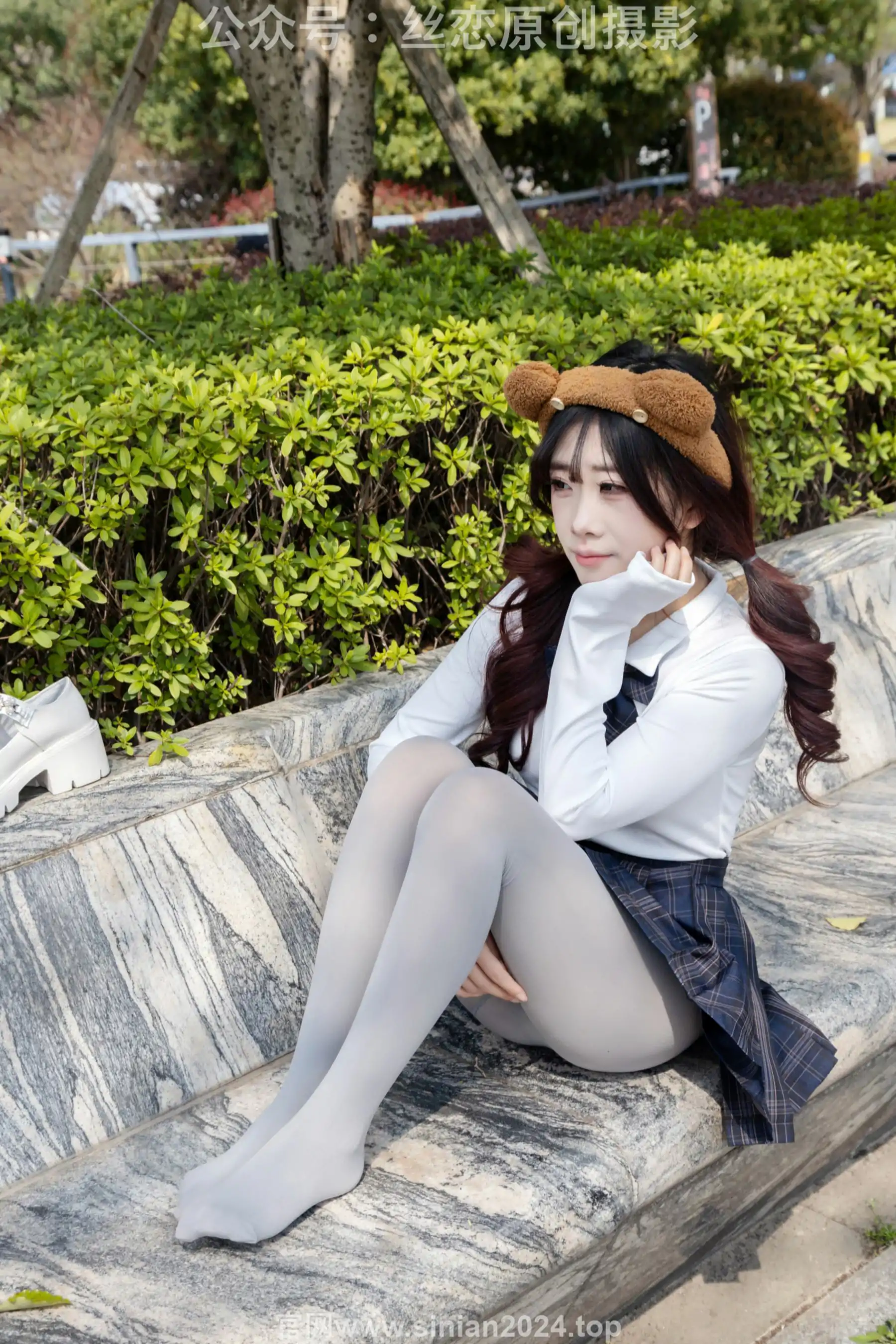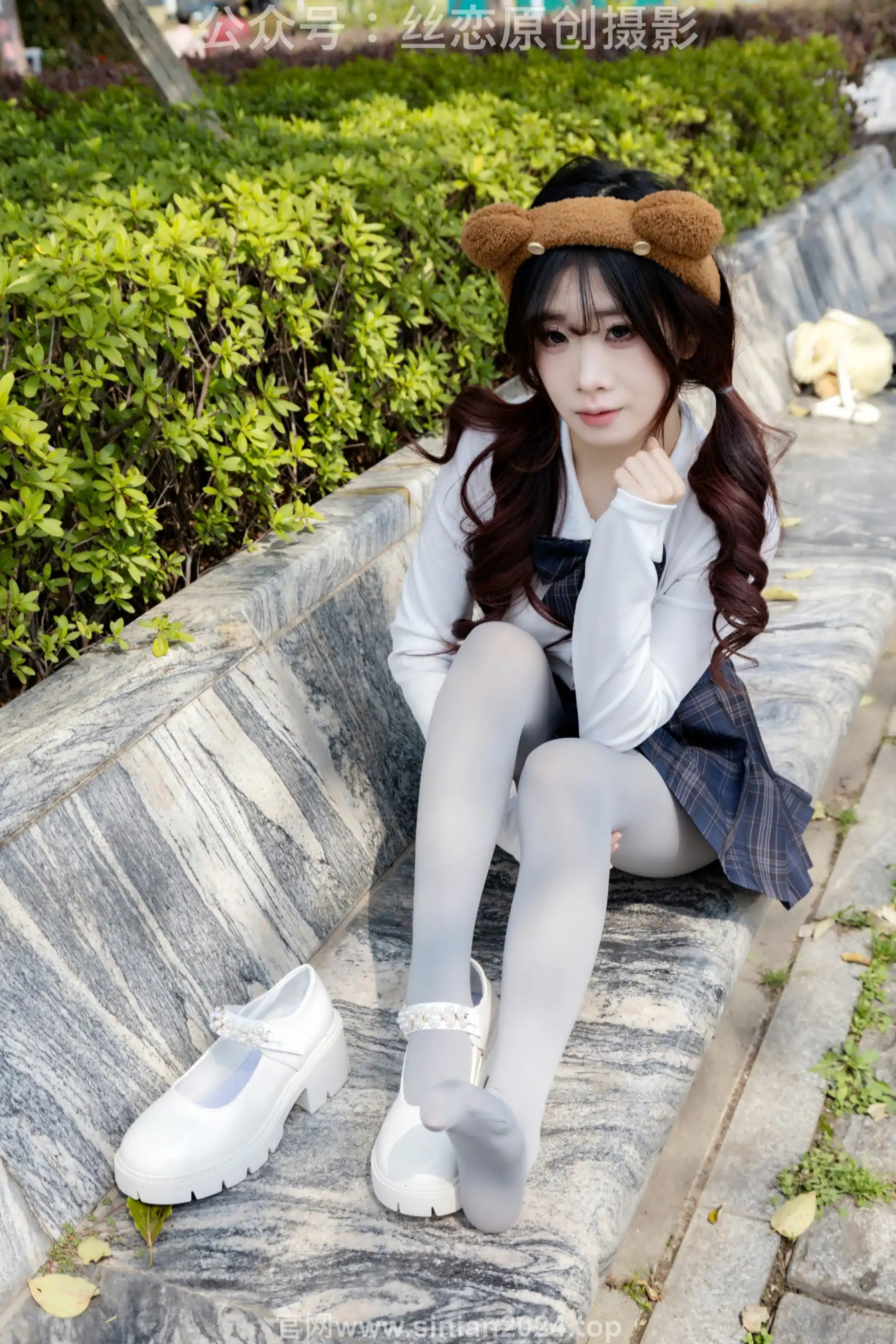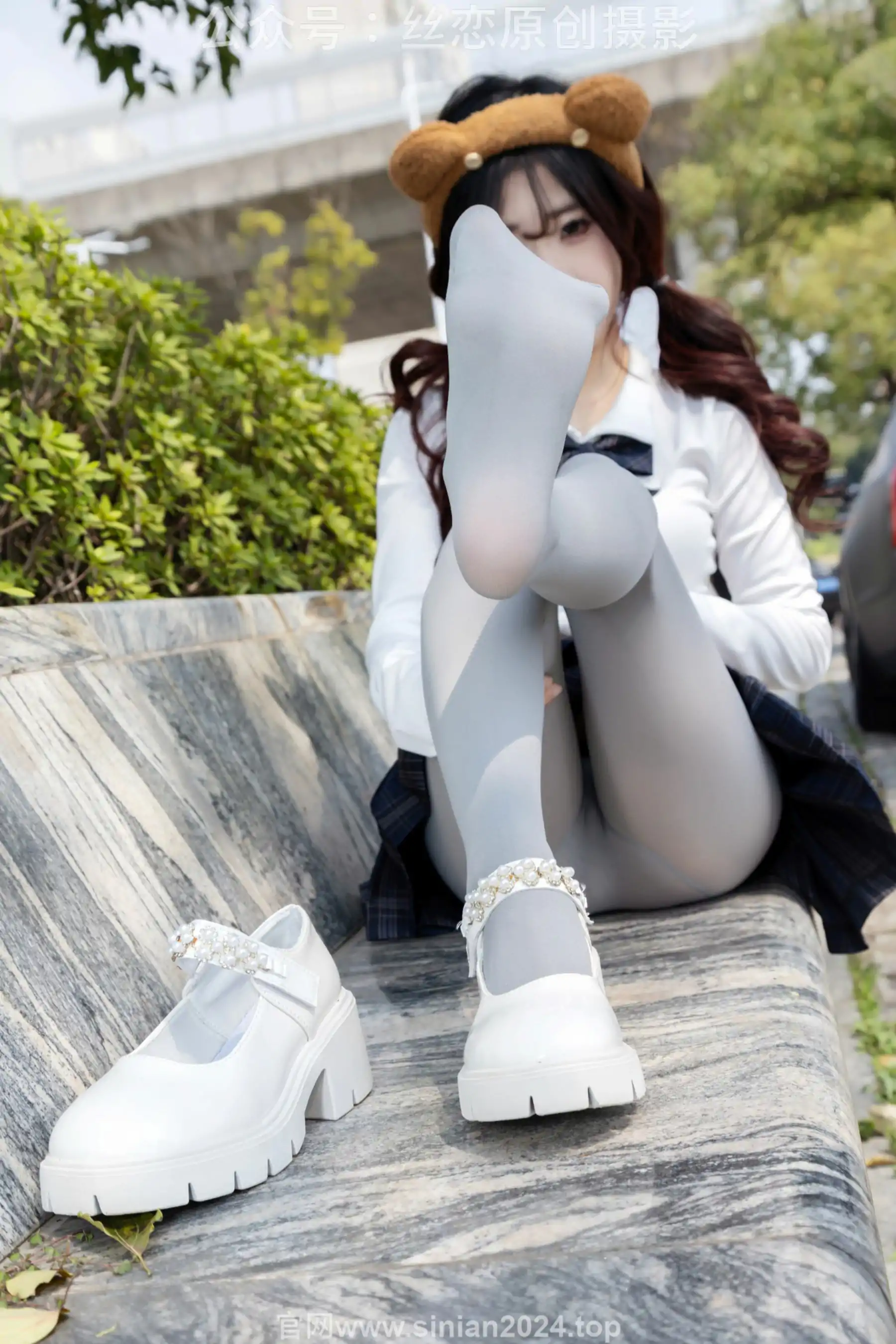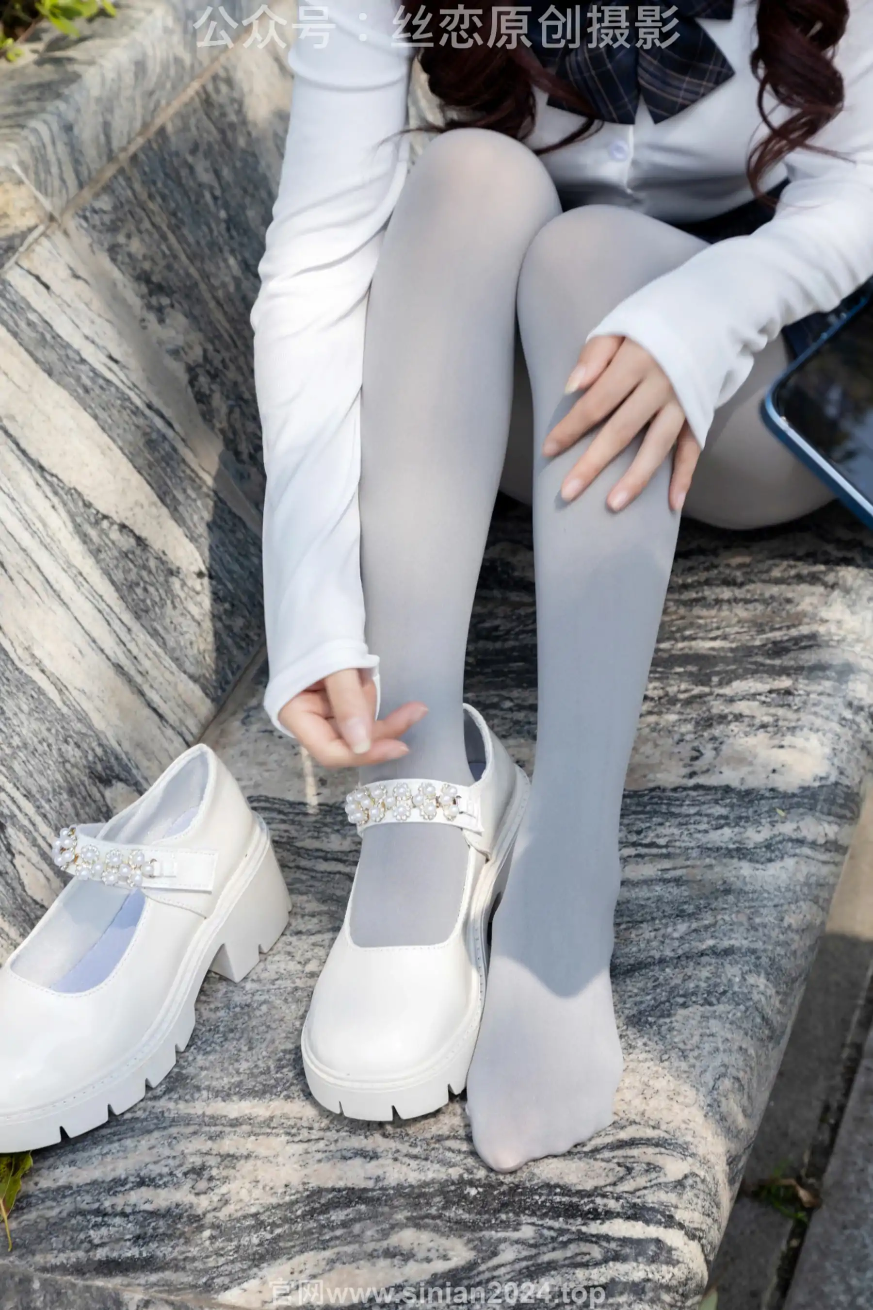 丝恋摄影 No.009 小梦 - 白色衬衫 碎花短裙 灰色丝袜 白色玛丽珍(283P)