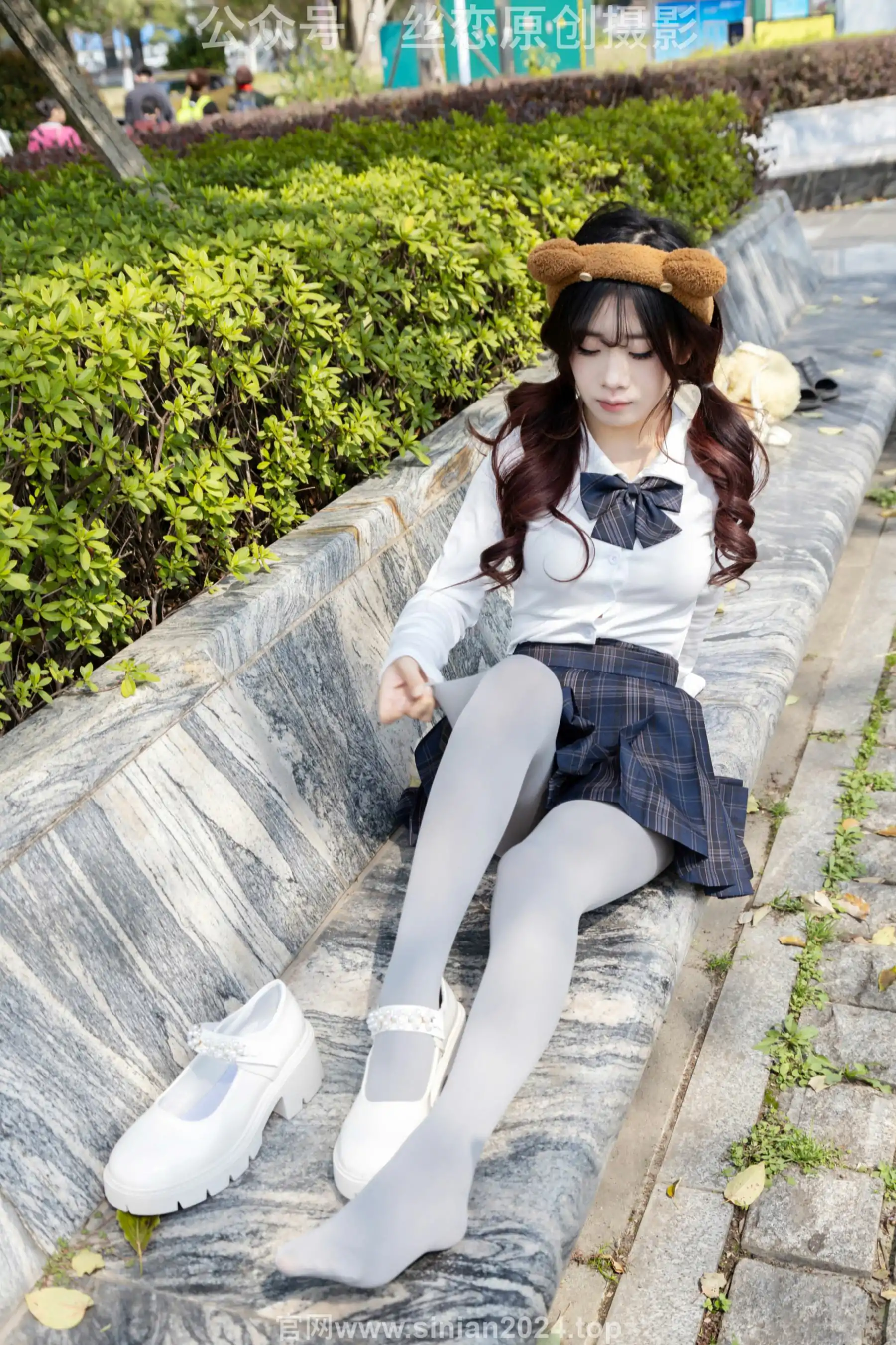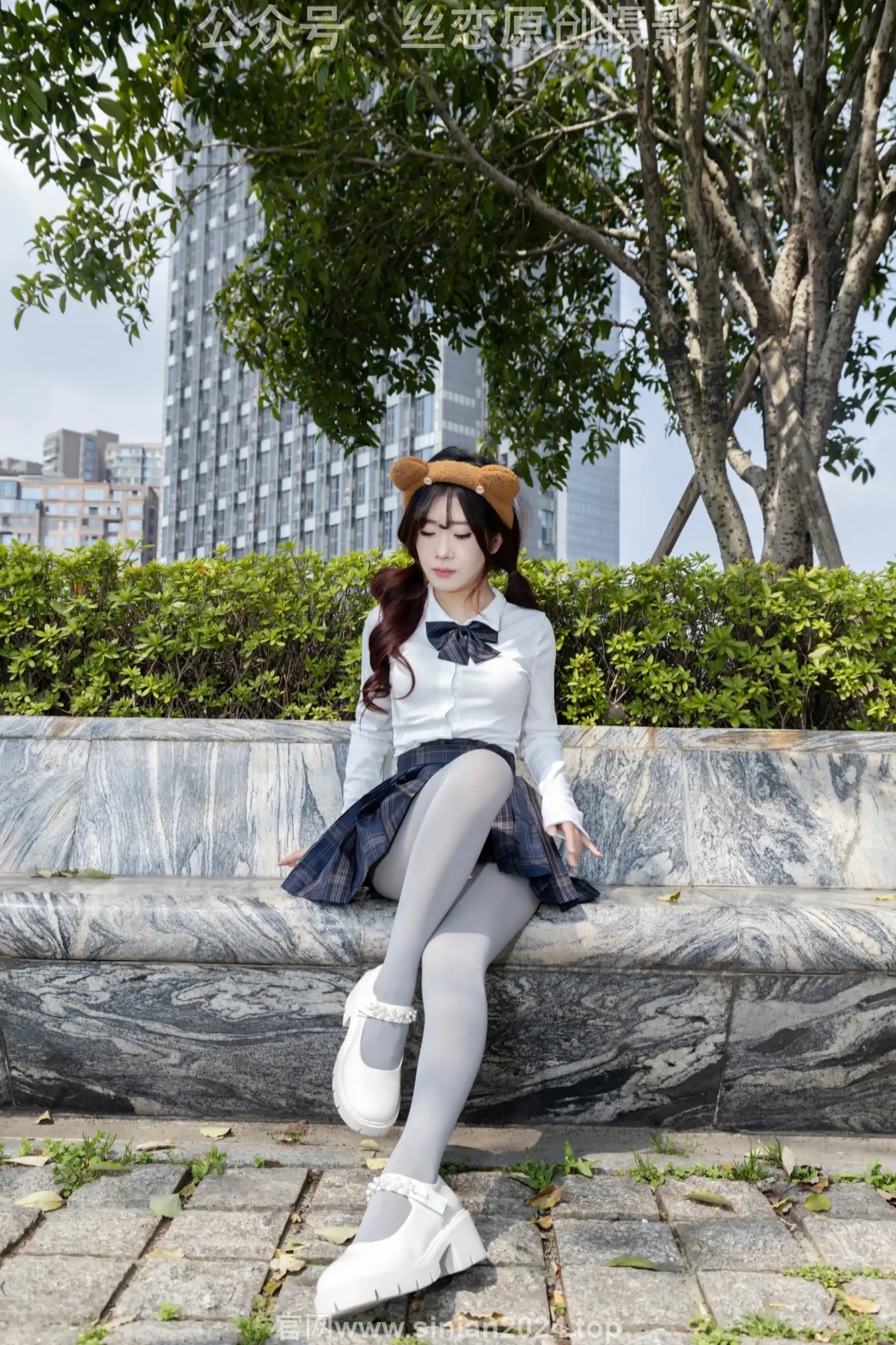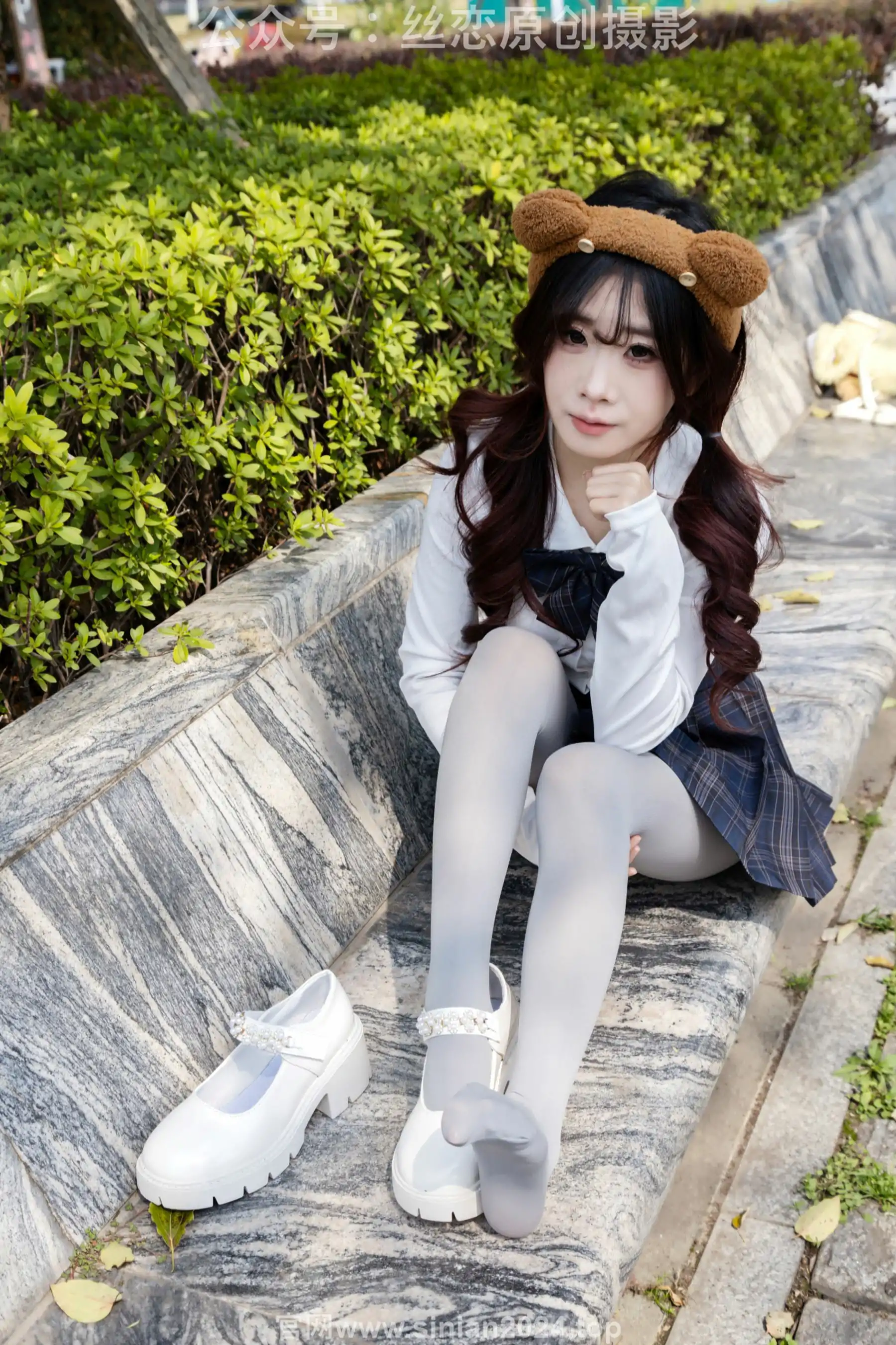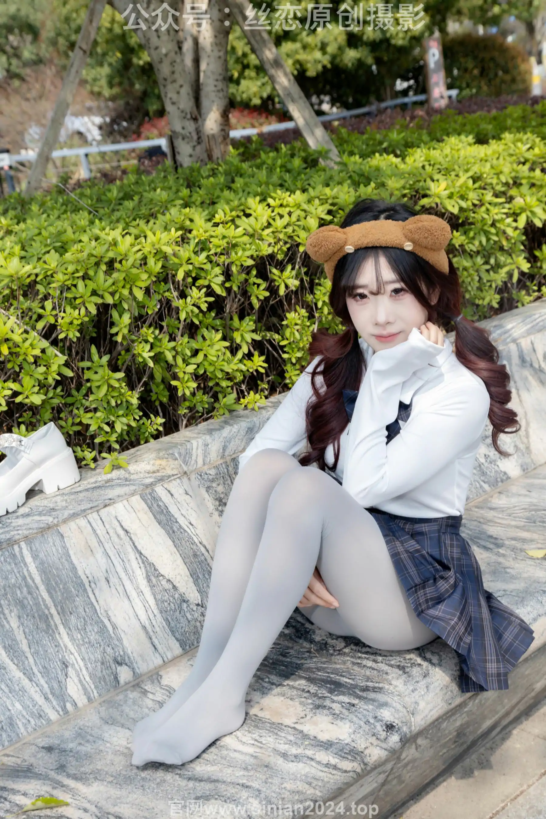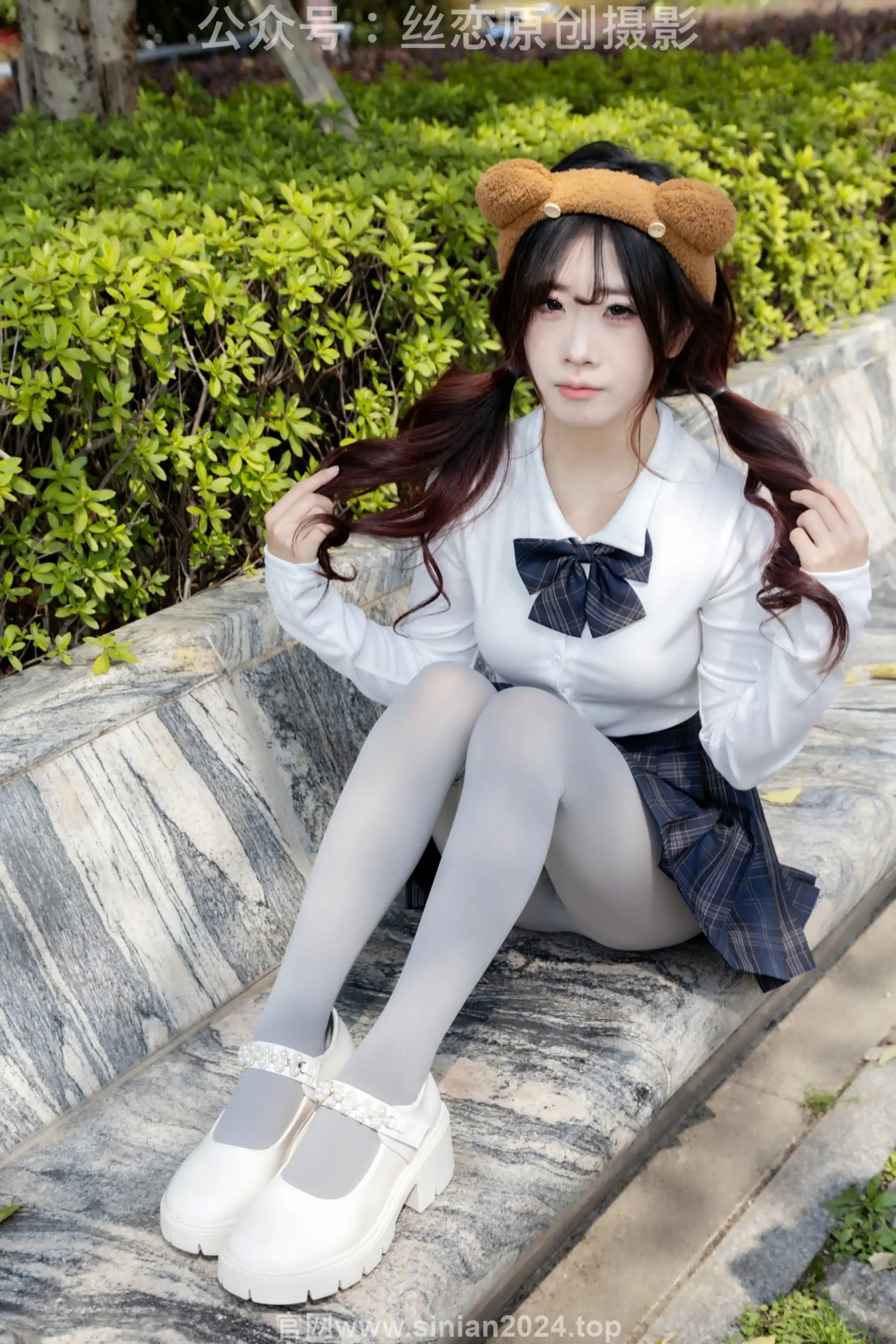 丝恋摄影 No.009 小梦 - 白色衬衫 碎花短裙 灰色丝袜 白色玛丽珍(283P)